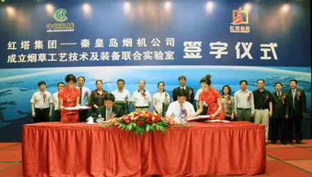紅塔集團——秦皇島煙機公司成立煙草工藝技術及裝備聯(lián)合實驗室(圖)