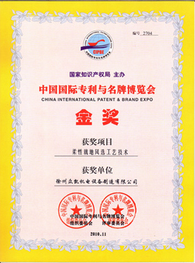 徐州眾凱公司由徐州市科技局組織本市重點(diǎn)自主創(chuàng)新技術(shù)產(chǎn)品組團(tuán)參加了本次國際專利與名牌博覽會。在本次展會上,徐州眾凱公司擁有完全自主知識產(chǎn)權(quán)的創(chuàng)新技術(shù)產(chǎn)品---柔性就地風(fēng)選工藝技術(shù)榮獲“金獎”。徐州眾凱公司同時獲得“專利優(yōu)秀企業(yè)”稱號,并獲得證書及獎杯。