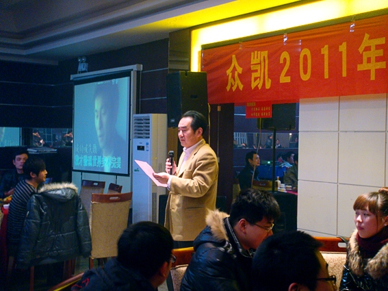 晚會伊始,眾凱公司董事長卓衛(wèi)民發(fā)表了熱情洋溢的新年致辭?偨Y(jié)了眾凱公司2010年取得的成績:闖關(guān)東,進(jìn)西南,馳騁中原,享譽(yù)上海灘,各條戰(zhàn)線捷報(bào)頻傳,職工收入持續(xù)增長,公司和社會效益顯著增加;展望了2011年的發(fā)展規(guī)劃,東西聯(lián)動,整合資源,立足煙草,拓展新領(lǐng)域,締造新奇跡!