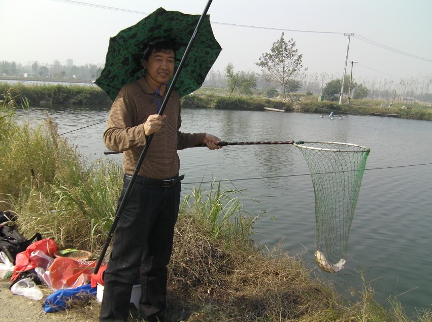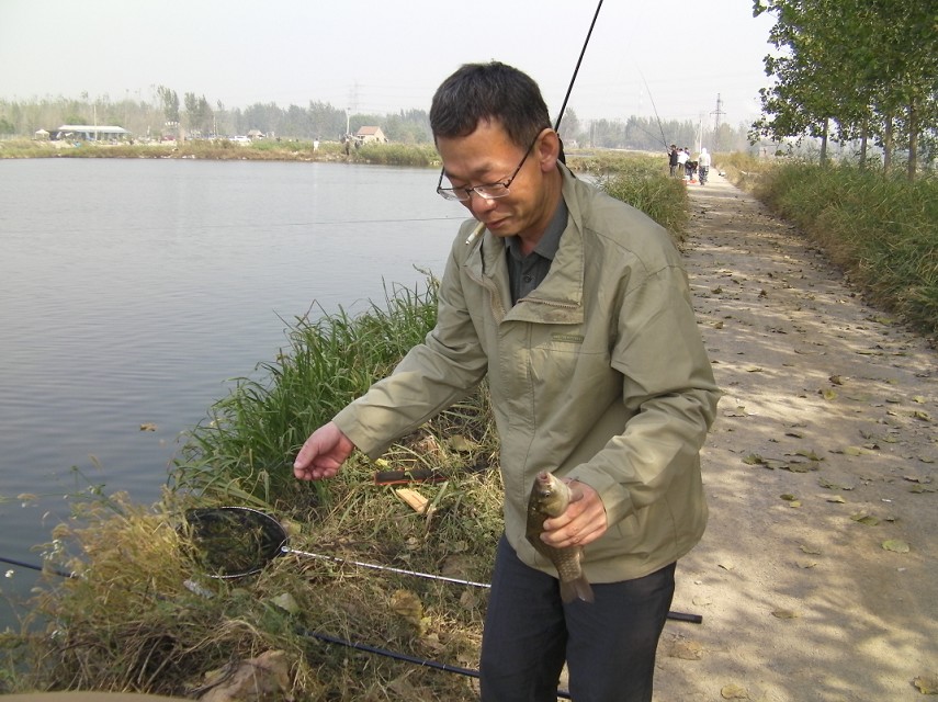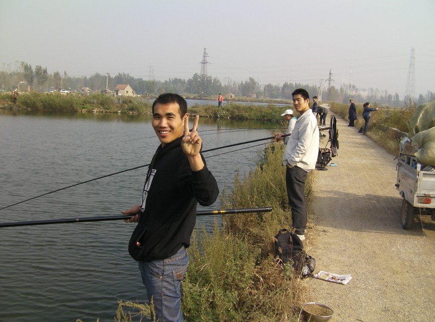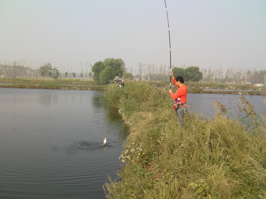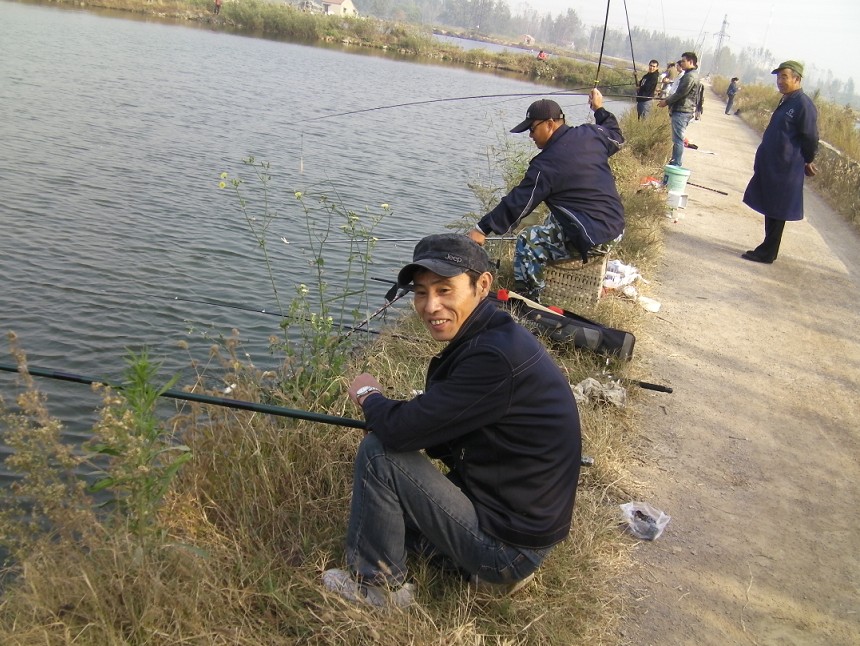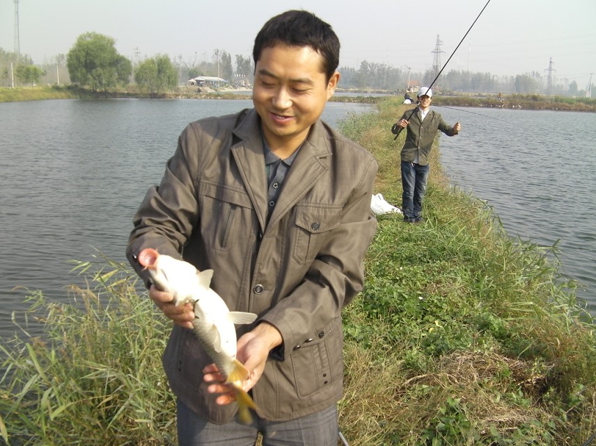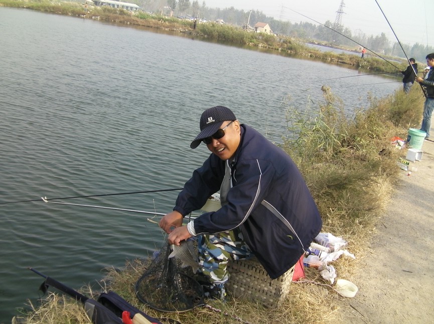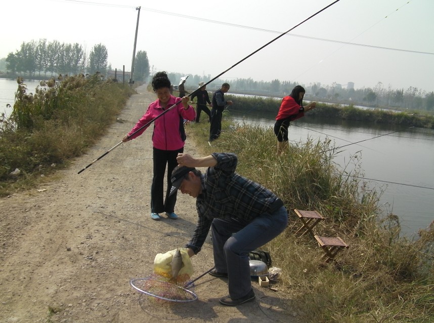 半小時(shí)后到達(dá)目的地。大家迫不急待拿出魚(yú)具,數(shù)十條魚(yú)竿分列池塘周圍,場(chǎng)面煞是壯觀。大家全神貫注,忙得不亦樂(lè)乎。投食,拌餌上食,串食,等浮漂,提竿,抄魚(yú)……上鉤魚(yú)兒 噼啪的拍水聲和大家的歡呼聲此起彼伏,映襯著一池碧水別有情趣。