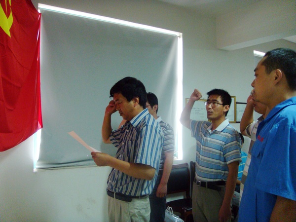 張輝等四名預(yù)備黨員,在王總帶領(lǐng)下,面對黨旗,莊嚴(yán)宣誓,洪亮的宣誓詞鼓舞了他們,也激勵了大家。張輝、黨員代表代利分別發(fā)了言,他們表示今后要敢于承擔(dān)責(zé)任,努力工作,充分發(fā)揮共產(chǎn)黨員模范帶頭作用,為公司又好又快地發(fā)展做出貢獻(xiàn)。