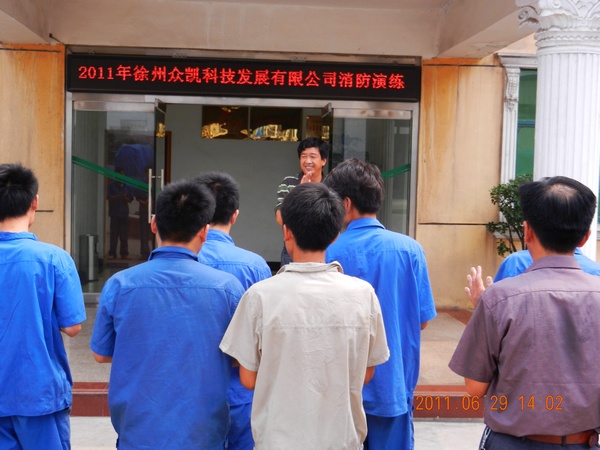 2011年6月29日下午2點,徐州眾凱公司為進一步貫徹國家“安全生產(chǎn)月”的相關(guān)要求,根據(jù)上級統(tǒng)一部署,舉行消防演練。此次演練成立了專門的領(lǐng)導(dǎo)小組,由公司全體人員參加,王總親自主持并提出要求。