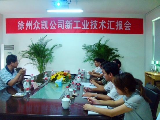 813,徐州市科技局袁副局長蒞臨徐州眾凱公司檢察指導(dǎo)工作。公司技術(shù)人員詳細(xì)匯報了目前公司的新工業(yè)生產(chǎn)技術(shù)及成套裝備研發(fā)進展情況。袁副局長高瞻遠矚,提出了許多寶貴的意見及針對性的建議,為公司今后更好更快發(fā)展理清了思路,找準(zhǔn)了奮斗方向,明確了努力目標(biāo)。