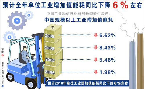 “十一五”前四年,我國年耗能18萬噸標準煤以上的重點企業(yè)節(jié)能約1.3億噸標準煤。2009年規(guī)模以上工業(yè)萬元工業(yè)增加值用水量比上年下降8.2%,工業(yè)固體廢棄物綜合利用率達到66%。