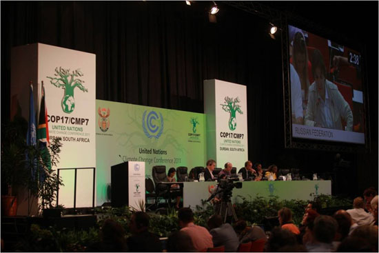11月28日~12月11日,《聯(lián)合國(guó)氣候變化框架公約》第17次締約方會(huì)議暨《京都議定書》第7次締約方會(huì)議在南非德班舉行,“一攬子決議”艱難降生。決議決定建立德班增強(qiáng)行動(dòng)平臺(tái)特設(shè)工作組,實(shí)施《京都議定書》第二承諾期并啟動(dòng)綠色氣候基金。此外,一攬子決議中其他文件包括制定監(jiān)督和核查減排的規(guī)則、保護(hù)森林等。