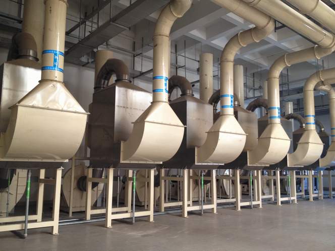 卷煙廠絲束成型車間的絲束成型機和發(fā)射機在運行中會產(chǎn)生大量的飛花和粉塵,并在空氣中擴散,而產(chǎn)塵源又不斷地產(chǎn)生粉塵致使整個車間粉塵密度會不斷的上升。長時間工作在這種場所中的工人,吸進肺部的粉塵量就會很多,當(dāng)達到一定數(shù)量時,就能引起肺部組織發(fā)生纖維化病變,最終導(dǎo)致塵肺。豢諝庵械姆蹓m落到機器的轉(zhuǎn)動部件上,會加速轉(zhuǎn)動部件的磨損,降低機器工作的精度和壽命;空氣中的粉塵進入絲束產(chǎn)品和煙用嘴棒成型過程中直接影響產(chǎn)品質(zhì)量。