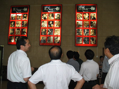 閆亞明院長(zhǎng)首先陪同客人參觀了鄭州院科技成果展覽以及“名人與煙”、“百姓與煙”等宣傳畫,來訪客人們?cè)谛麄鳟嬊榜v足良久,饒有興趣地爭(zhēng)相猜測(cè)名人的名字。周昌貢總經(jīng)理表示,這個(gè)創(chuàng)意非常好,反映了煙民的普遍性,看到他們,我們的工作才更有動(dòng)力。