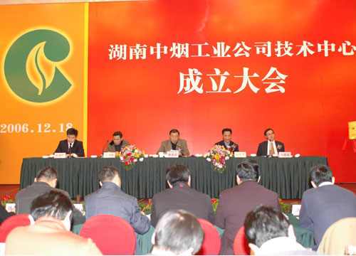 煙草在線湖南消息 2006年12月18日,湖南中煙工業(yè)公司在湖南長沙舉行了技術(shù)中心掛牌成立大會。長沙、常德兩廠技術(shù)中心科技人員歡聚一堂,共同見證湖南煙草工業(yè)科技發(fā)展事業(yè)新的里程碑。湖南中煙工業(yè)公司總經(jīng)理周昌貢、湖南省煙草專賣局局長楊先杰共同為新成立的湖南中煙工業(yè)公司技術(shù)中心揭牌。