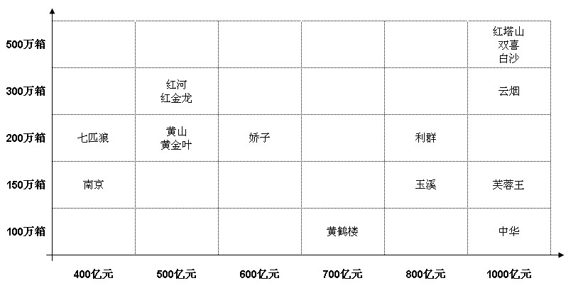 目標(biāo)高調(diào)、意在占位。在532、461目標(biāo)提出之后,似乎在一夜之間,中國的卷煙品牌突然異乎尋常的高調(diào)起來。是的,以500萬箱、300萬箱、200萬箱和1000億元、600億元、400億元作為發(fā)展目標(biāo),這些品牌想不高調(diào)都難。到目前為止,銷量目標(biāo)設(shè)定為500萬箱的品牌有白沙、紅塔山、雙喜,300萬箱的有紅河、紅金龍、云煙,200萬箱的有七匹狼、黃山、黃金葉、嬌子、利群;商業(yè)銷售收入目標(biāo)設(shè)定為1000億元的有中華、芙蓉王、紅塔山、雙喜、白沙、云煙,800億元的有玉溪、利群,700億元的有黃鶴樓,600億元的有嬌子、500億元的有紅河、紅金龍、黃山、黃金葉,400億元的有七匹狼、南京;同時,以商業(yè)銷售收入為主要訴求的品牌同樣設(shè)定了規(guī)模目標(biāo),中華、黃鶴樓設(shè)定為100萬箱,芙蓉王、玉溪、南京同為150萬箱。但是,上述品牌的實際情況與目標(biāo)設(shè)定還有巨大的差距,有些目標(biāo)甚至可以理解為“不靠譜”,過于宏大和冒進(jìn)。