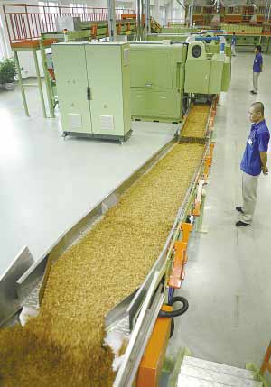 “這個不會的,新煙廠的生產(chǎn)環(huán)節(jié)通過合理設置地下連廊、地上連廊,將各建筑物緊密相連,使生產(chǎn)原料、各種材料、成品等在廠區(qū)內(nèi)自動輸送,真正實現(xiàn)了閉環(huán)式生產(chǎn)的先進物流體系。老煙廠的味道,如今已經(jīng)沒有了!痹跓煆S工作人員的介紹中,長春卷煙廠新廠區(qū)的生產(chǎn)工藝流程,已經(jīng)達到了全國煙草行業(yè)領先水平。而且車間生產(chǎn)過程中實現(xiàn)全程監(jiān)控和設備的數(shù)據(jù)采集,實現(xiàn)數(shù)字化全程監(jiān)控管理,并匯入企業(yè)信息管理系統(tǒng),“最簡單的例子,現(xiàn)在我們的生產(chǎn)線,一分鐘之內(nèi)就能有400包香煙下線。而一套包裝設備,僅僅需要兩個人看守就能完成生產(chǎn)!