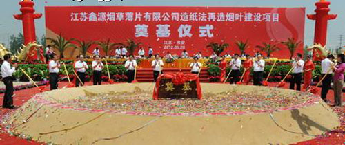 趙洪順在奠基儀式上代表國家煙草專賣局、中國煙草總公司對項目奠基表示祝賀,他對江蘇中煙近年來取得的發(fā)展業(yè)績給予高度評價。對于項目下一步建設(shè),他要求,江蘇中煙要切實加強對項目建設(shè)的過程管理,積極做好造紙法再造煙葉的應(yīng)用準(zhǔn)備,在卷煙減害降焦方面取得更大的進步和成效,在更高水平、更高層次上推動品牌發(fā)展;江蘇鑫源要以打造“國內(nèi)一流、國際先進”的造紙法再造煙葉生產(chǎn)線為己任,高標(biāo)準(zhǔn)推進項目建設(shè),嚴格程序,規(guī)范運作,狠抓工程建設(shè)質(zhì)量和進度,全力打造“陽光工程、廉潔工程、優(yōu)質(zhì)工程”,為江蘇煙草工業(yè)持續(xù)、健康發(fā)展,為淮安地方經(jīng)濟社會建設(shè)作出積極貢獻。