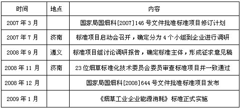 《煙草工業(yè)企業(yè)能能消耗》標準的制訂過程
