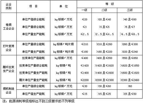 《煙草工業(yè)企業(yè)能源消耗》標準的能耗指標