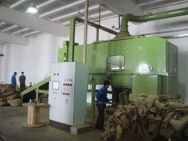 一、適用范圍: 目前煙梗的包裝物普遍采用麻包,生產(chǎn)現(xiàn)場(chǎng)的開(kāi)包上料基本上都采用人工方式。由于煙梗的含水量較低,在運(yùn)輸和貯存過(guò)程中煙梗之間相互摩擦?xí)a(chǎn)生很多粉塵,因此在開(kāi)包過(guò)程中這些粉塵將會(huì)外溢。 煙梗自動(dòng)開(kāi)包機(jī)是用于梗絲線前段對(duì)煙梗麻包進(jìn)行自動(dòng)上料、自動(dòng)開(kāi)包的煙梗預(yù)處理設(shè)備。使用該設(shè)備可減少環(huán)境污染,降低勞動(dòng)強(qiáng)度,提高制絲生產(chǎn)線的自動(dòng)化水平。